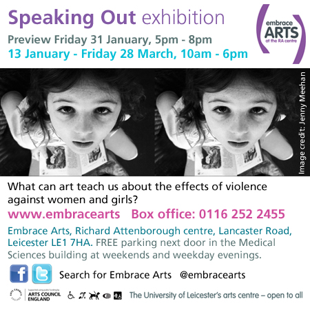On 31 January 2014, Embrace Arts, the University of Leicester’s Arts Centre, will bring together artists, survivors, support organisations, and local communities to creatively explore the causes and effects and find empowering responses to gender violence.